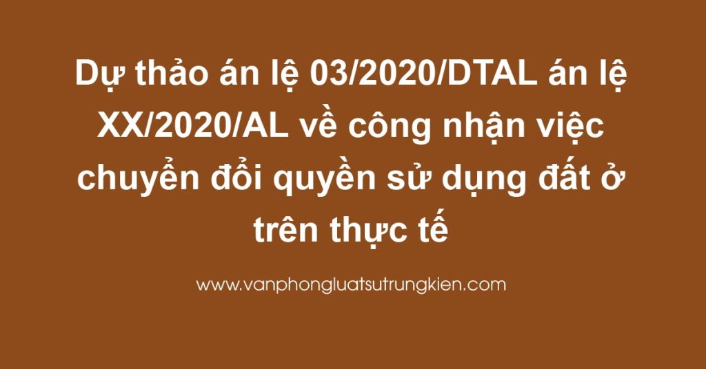Tòa án nhân dân tối cao Dự thảo án lệ 03/2020/DTAL án lệ XX/2020/AL về công nhận việc chuyển đổi quyền sử dụng đất ở trên thực tế NỘI DUNG VỤ ÁN TÒA ÁN NHÂN DÂN TỐI CAO DỰ THẢO ÁN LỆ 03/2020/DTAL ÁN LỆ XX/2020/AL VỀ CÔNG NHẬN VIỆC CHUYỂN ĐỔI QUYỀN SỬ DỤNG ĐẤT […]