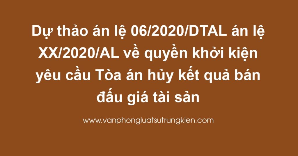 Tòa án nhân dân tối cao Dự thảo án lệ 06/2020/DTAL án lệ XX/2020/AL về quyền khởi kiện yêu cầu Tòa án hủy kết quả bán đấu giá tài sản NỘI DUNG VỤ ÁN TÒA ÁN NHÂN DÂN TỐI CAO DỰ THẢO ÁN LỆ 06/2020/DTAL ÁN LỆ XX/2020/AL VỀ QUYỀN KHỞI KIỆN YÊU CẦU TÒA […]