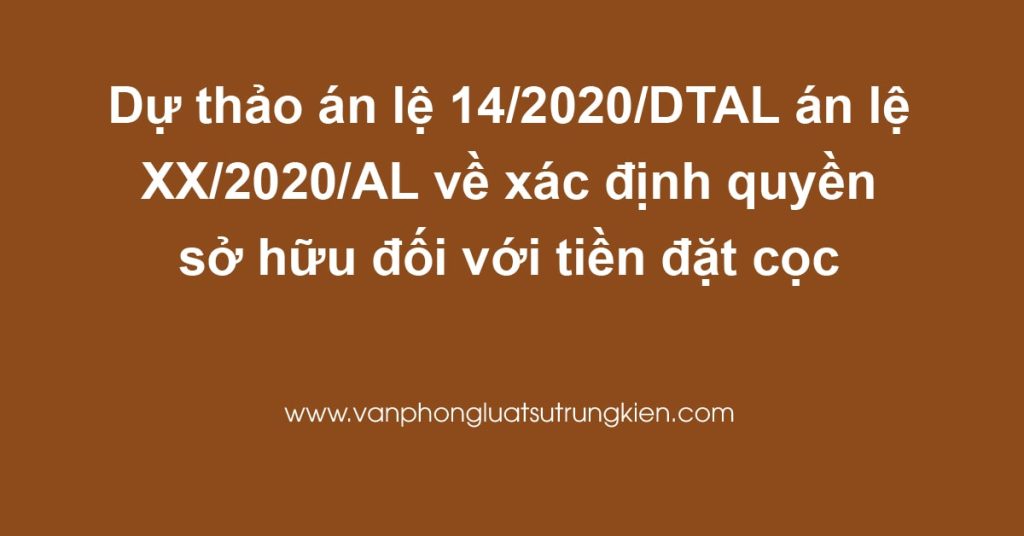 Tòa án nhân dân tối cao Dự thảo án lệ 14/2020/DTAL án lệ XX/2020/AL về xác định quyền sở hữu đối với tiền đặt cọc NỘI DUNG VỤ ÁN TÒA ÁN NHÂN DÂN TỐI CAO DỰ THẢO ÁN LỆ 14/2020/DTAL ÁN LỆ XX/2020/AL VỀ XÁC ĐỊNH QUYỀN SỞ HỮU ĐỐI VỚI TIỀN ĐẶT CỌC Được Hội đồng […]
