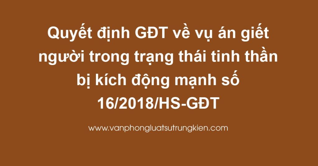 Hội đồng Thẩm phán Tòa án nhân dân tối cao Án lệ số 28/2019/AL về tội “Giết người trong trạng thái tinh thần bị kích động mạnh” KHÁI QUÁT ÁN LỆ – Tình huống án lệ: Bị hại đã thực hiện một chuỗi hành vi trái pháp luật tấn công bị cáo liên tục, kéo […]